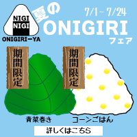 | 制作ポイント | おにぎり・木の板は自作。おにぎりが目立つように他はシンプルに制作。 春夏秋冬恒例のキャンペーンのバナーを想定し、同じレイアウトで カラーとメニューを変更するだけにしてリピーターにつながるように考慮。 |