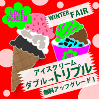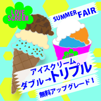| 制作ポイント | アイスクリームは自作。背景とフォントのカラーで季節感を演出。 イラストのアイスも季節を感じるラインナップを意識。 同じ構図にすることで恒例感を出し、リピーターを狙ったデザインで制作。 |